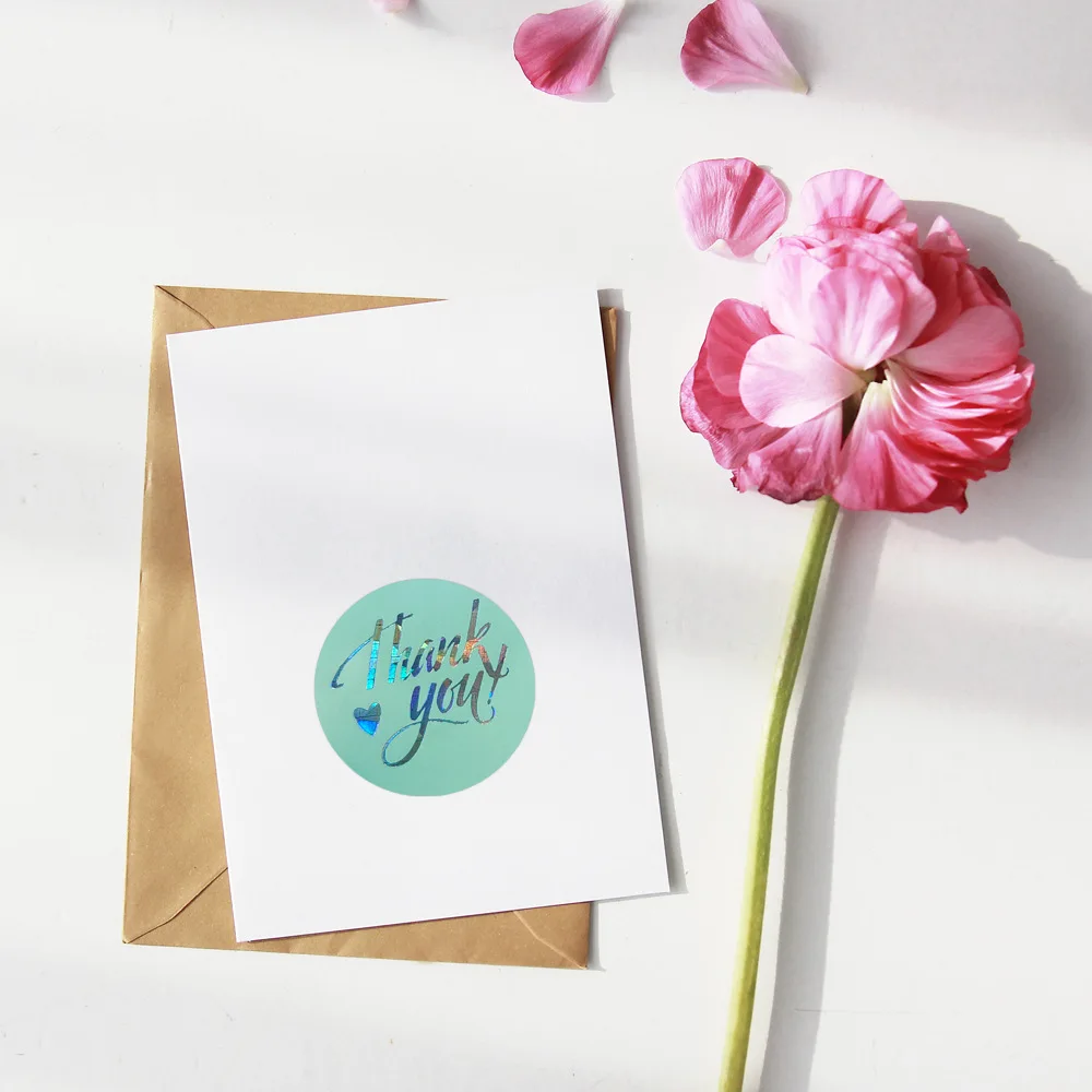 Includes 50pcs/100pcs/300pcs/500pcs Laser label stickers. Each label measures 1" in diameter. Beautiful design that is perfect for thank yous, wedding favors, small business owners and boutiques Printed on white gloss stock with a UV varnish to prevent ink from smearing Dress up envelopes, tissue, bags, boxes. Sticks to most surfaces and is the perfect way to add a personalized touch.