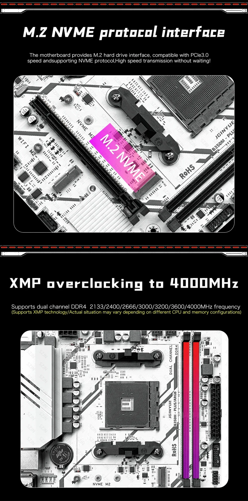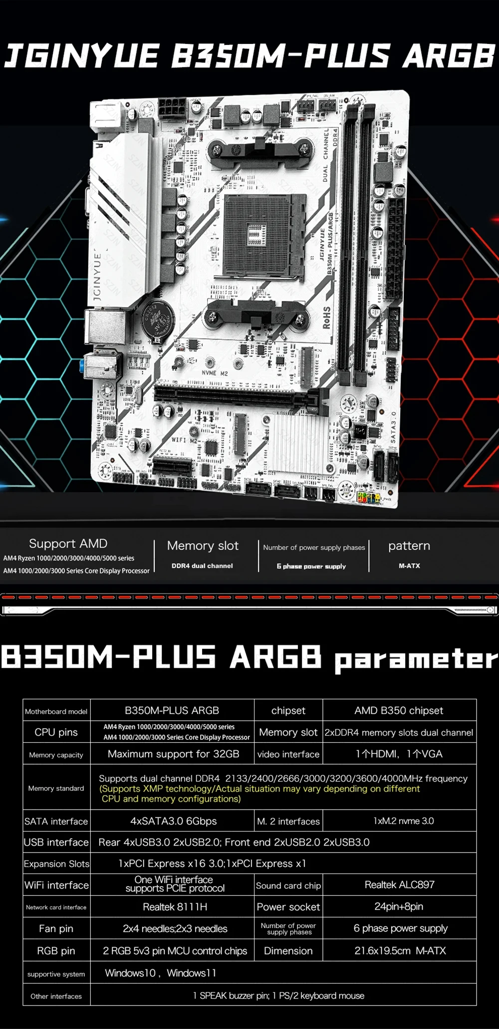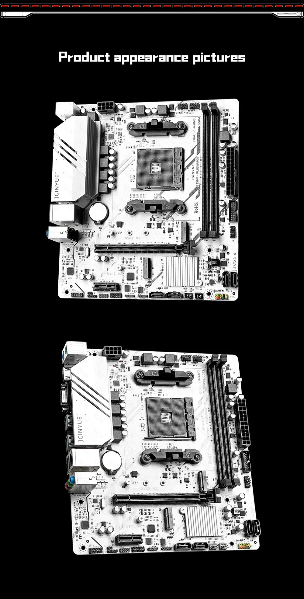 JGINYUE B350M Motherboard Set with AMD Ryzen 3/5/7 CPU Cooler DDR4 Dual Channel RAM Support M.2 NVME ARGB Computer Gaming Kit